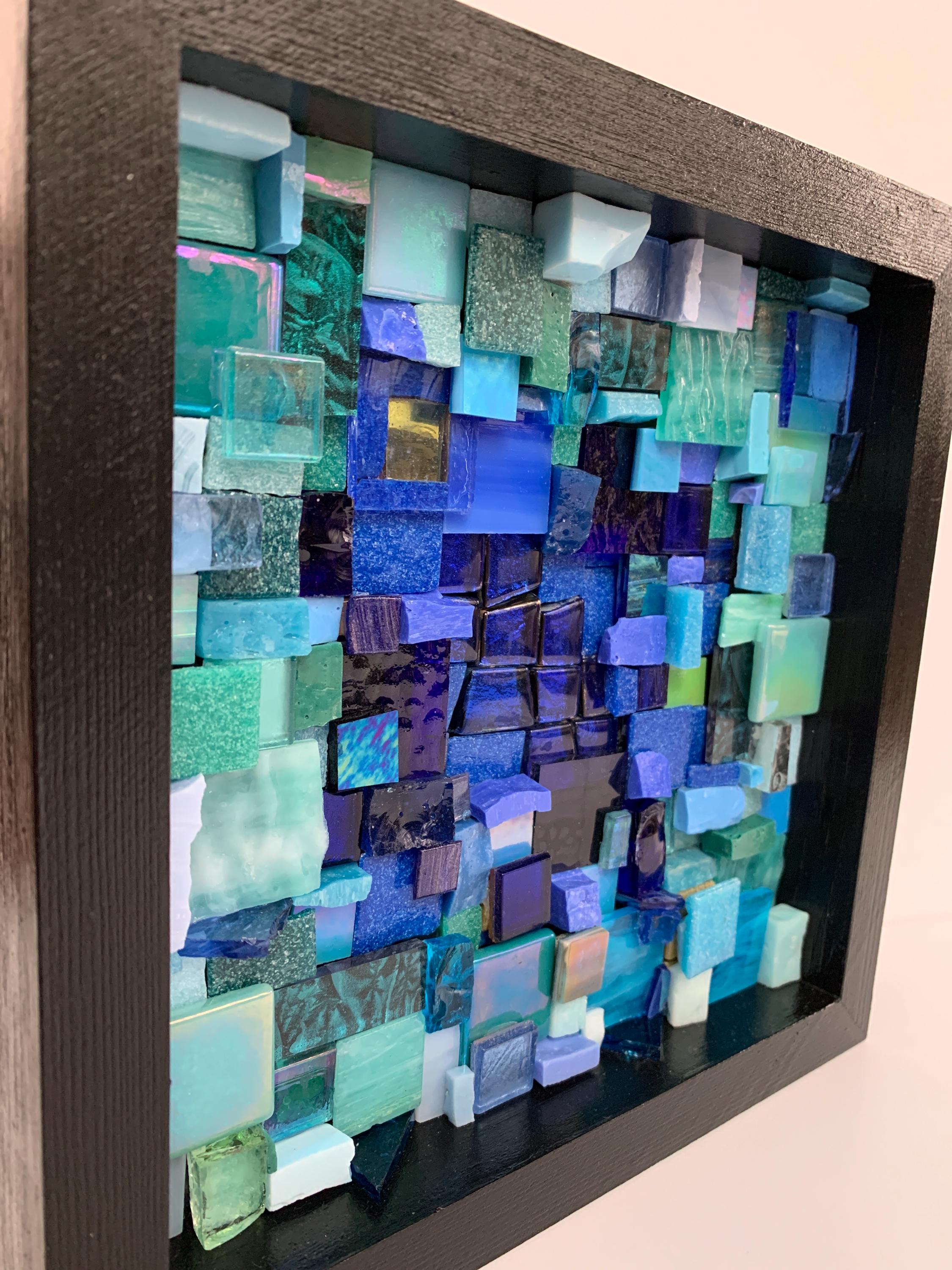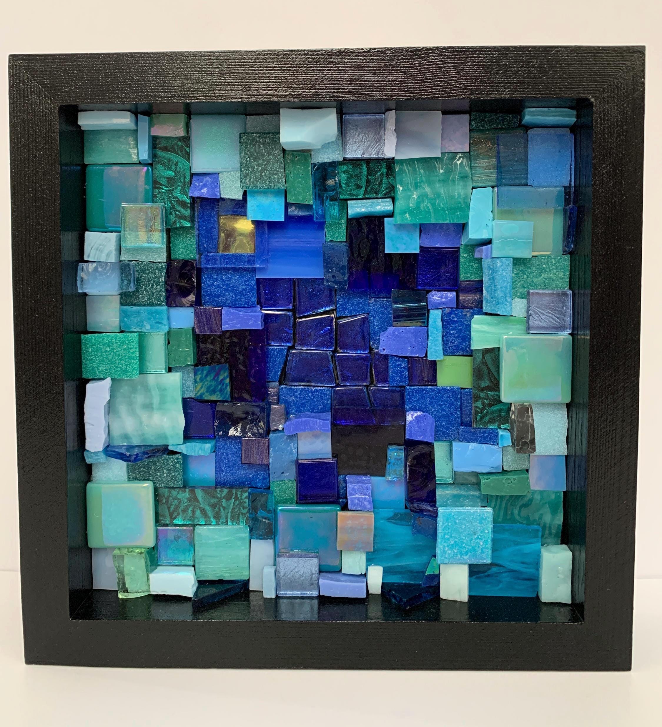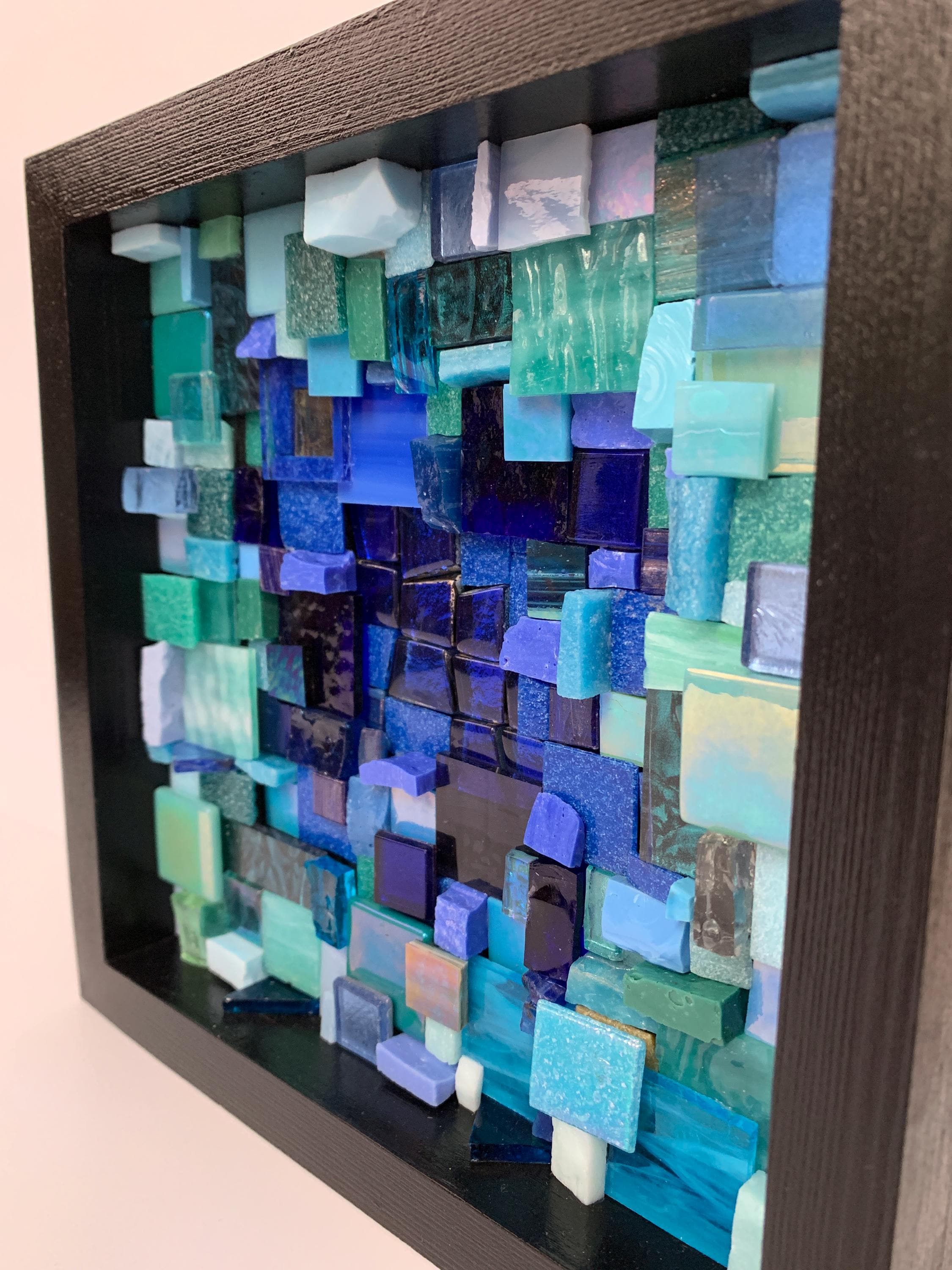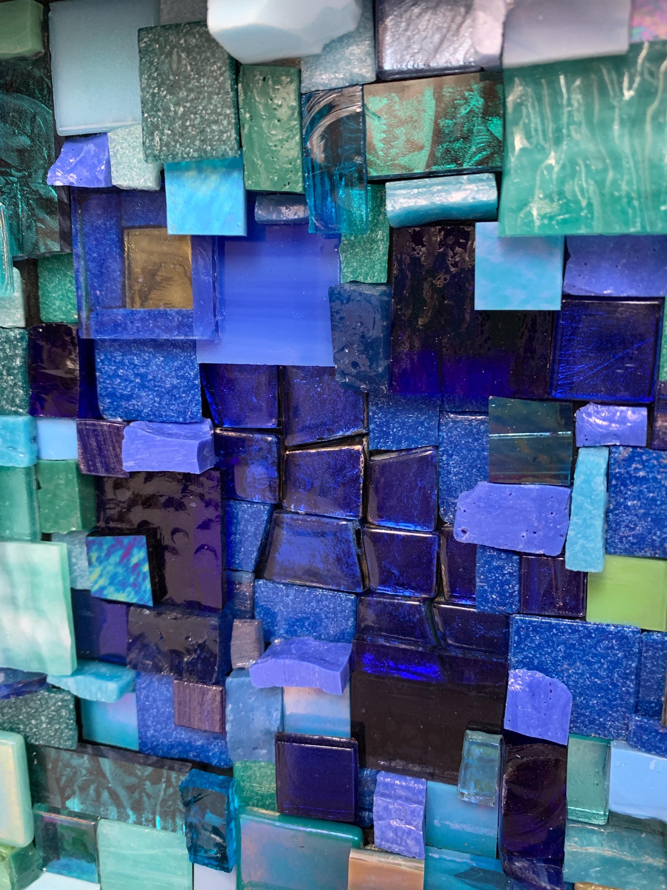 Brighten up your space with this one-of-a-kind mosaic piece featuring a unique mix of Italian vitreous, iridescent and smalti glass tiles! Tiles are carefully hand-cut and fit by hand on a multi-level surface, creating a three dimensional design with rich color and shimmer. All artwork is handmade by me, an actual person in my home studio - not AI, not a print, not a factory. Your walls will thank you for bringing them some sparkle and personality! Outer dimensions of this piece is 8"x8".
